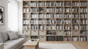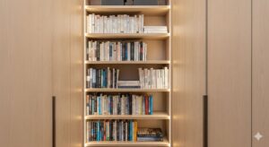 - 扉付きの本棚を選ぶ:これが最も確実な方法です。特にガラス扉のものは、中身が見えるので蔵書を楽しみながらホコリから完全に守ることができます。引き戸タイプなら開閉時に手前にスペースを必要としないため、限られた空間でも設置しやすいのが利点です。