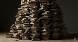 積まれた本の中から特定の一冊を取り出すのは、非常に面倒です。下の方にある本を取り出すためには、上の本をすべて一旦どかす必要があります。これを怠って無理に引き抜こうとすると、表紙カバーが破れたり、本の角が折れたりする原因となります。
