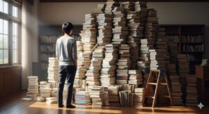 まず、家中の本をすべて一か所に集めてみましょう。本棚だけでなく、机の上、ベッドサイド、箱の中など、あらゆる場所から本を集めることで、自分がどれだけの量を所有しているかを視覚的に把握できます。これが現実を直視し、整理へのモチベーションを高める第一歩です。