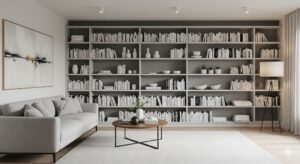- 扉付きの本棚を選ぶ:これが最も確実な方法です。特にガラス扉のものは、中身が見えるので蔵書を楽しみながらホコリから完全に守ることができます。引き戸タイプなら開閉時に手前にスペースを必要としないため、限られた空間でも設置しやすいのが利点です。