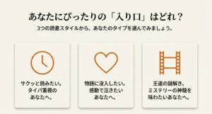 この記事を読めば、あなたの今の気分や読書環境にぴったりの、挫折しない最高の一冊が必ず見つかりますよ。